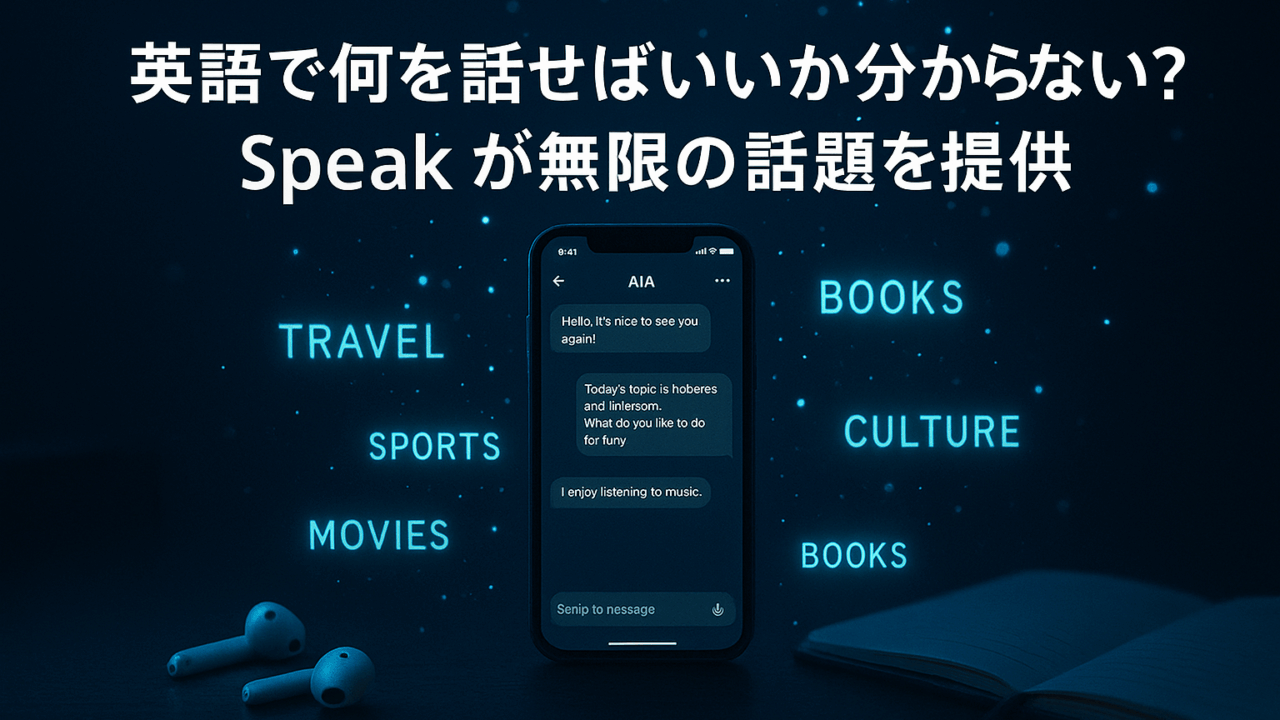 AI英会話アプリ「Speak」を使えば、話題枯渇の問題を完全に解決できます。実際に私が3ヶ月間使用した結果、一度も「話すことがない」という状況に陥ることがありませんでした。