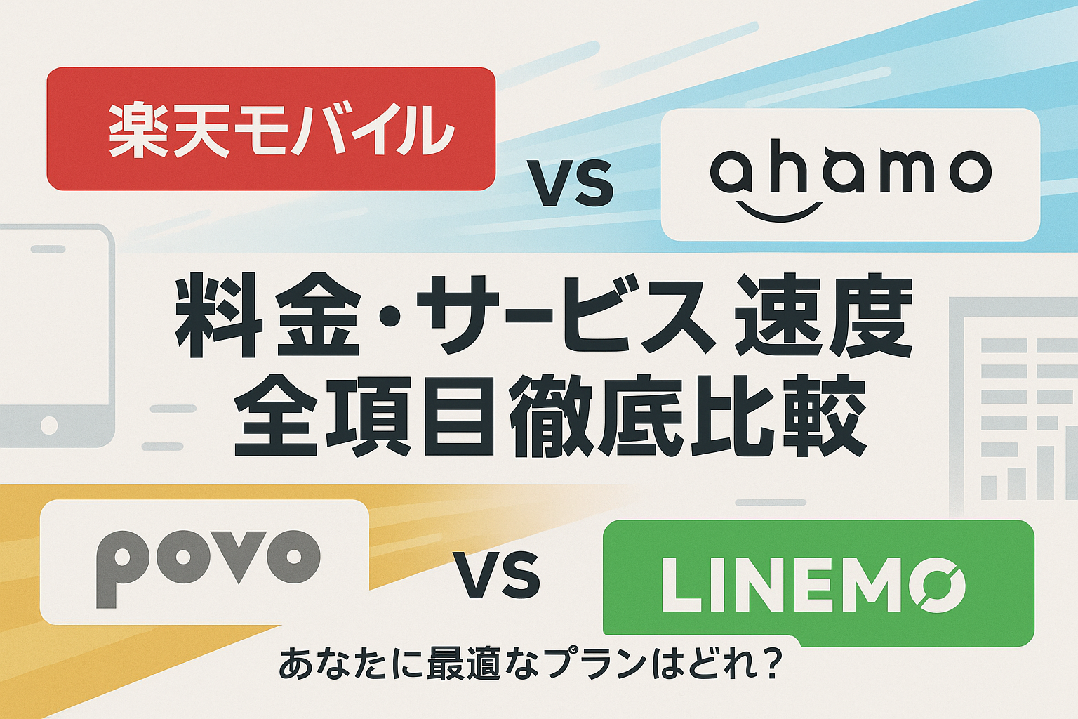 【2025年決定版】楽天モバイルvsahamo vs povo vs LINEMO 料金・サービス・速度全項目比較