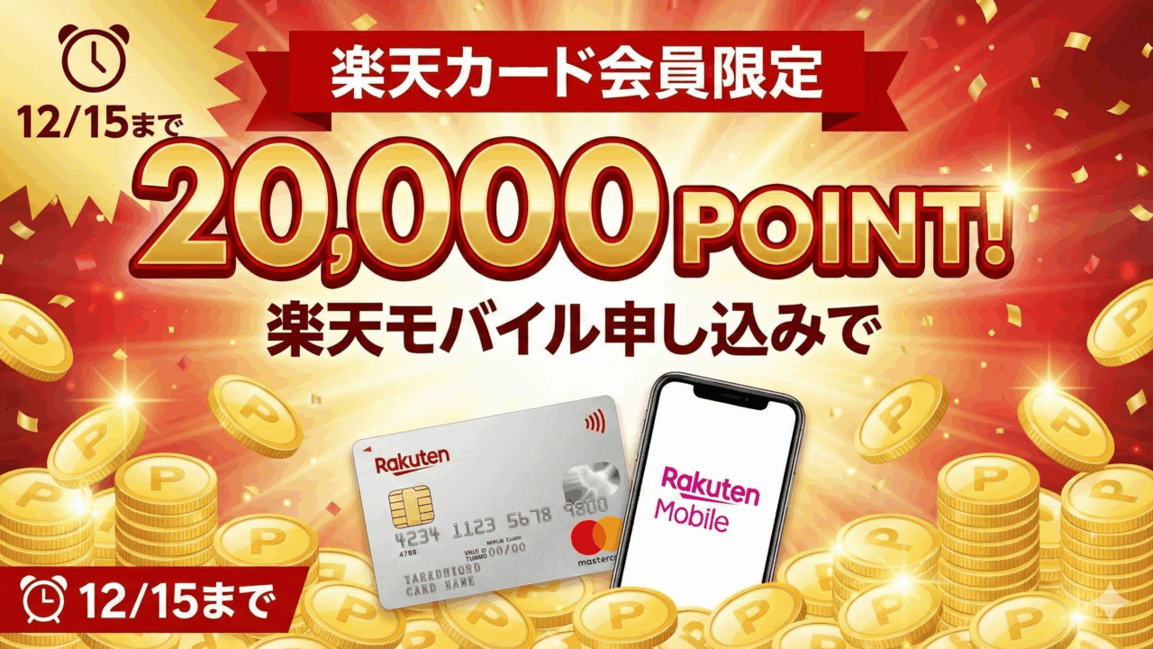 【緊急】楽天カード会員なら20,000ポイント!楽天モバイル過去最大級キャンペーン全解説【12/15まで】