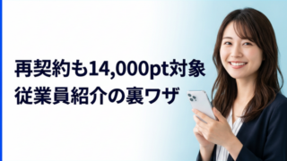 いつポイント進呈の条件が悪化するか分からない通信業界において、最大14,000ポイントがもらえる「従業員紹介キャンペーン」は異例の特大オファーです。